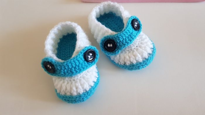 Tutorial Sapatinho em Crochê Azul Claro com Botão Passo a Passo