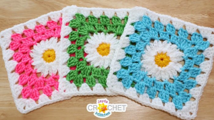 Tutorial square em crochê margarida colorido passo a passo